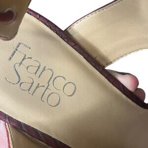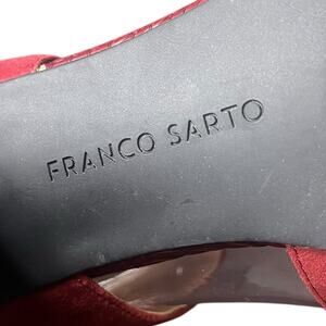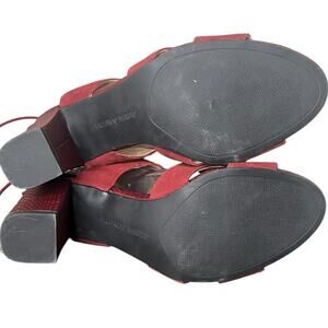 FRANCO SARTO L-Gem Burgundy Suede Ankle Strap Block Heel Tie Back Sandals Sz 9.5
