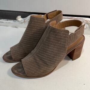 FRANCO SARTO Leather Suede Tan Brown Open Toe 3" Block Heels size 7.5