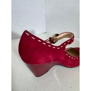 "FRANCO SARTO" Mary Jane Red Suede Dorothy Oz Wedge Heel Rockabilly Swing