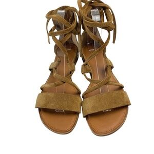 FRANCO SARTO Primrose Tan Suede Lace Up Sandal Flats size 8