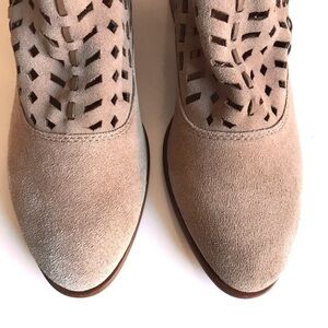FRANCO SARTO RORY Tan Suede laser cut ankle boots Size 7 booties