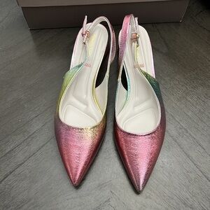FRANCO SARTO Racer Womens Buckle Pointed Toe Slingback Heels