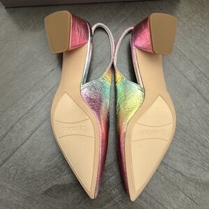 Chic charm. Mid heel womens dress shoes that exude feminine allure with a pointy toe and slingback silhouette.