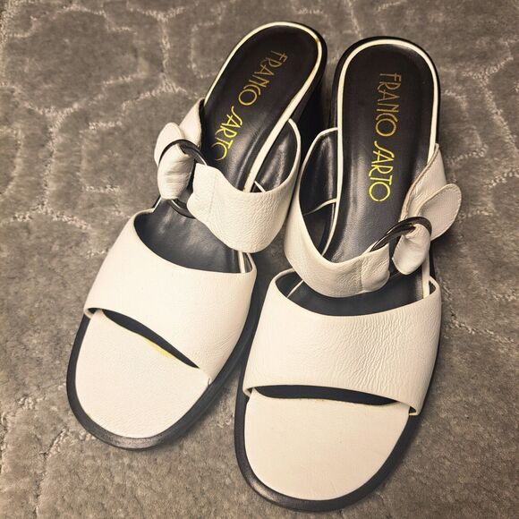 FRANCO SARTO Slip On Sandals WOMENS SIZE 8.5M white leather heeled open toe twee