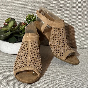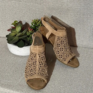 FRANCO SARTO Tan Woven block heel sandal size 6.