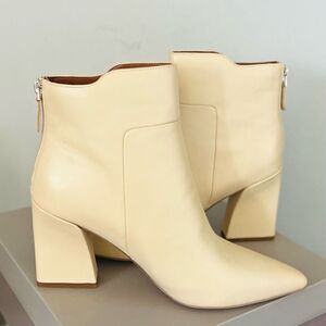 FRANCO SARTO Venture Leather Bootie Boot, Beige/White, Block Heel, Size 9, NWT