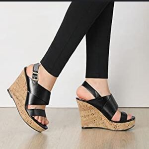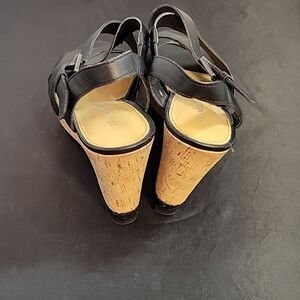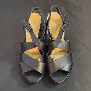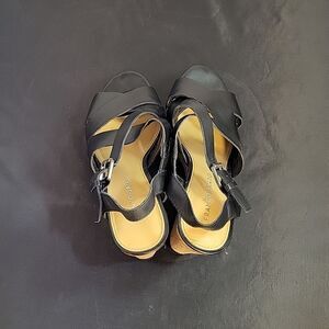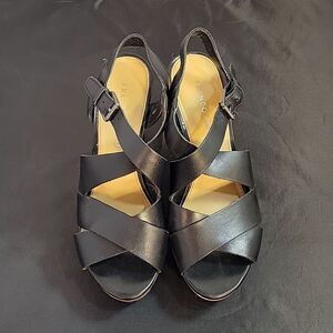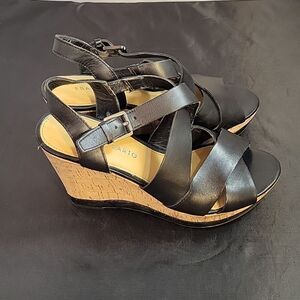 FRANCO SARTO WEDGE ADJUSTABLE BUCKLE ANKLE CRISSCROSS STRAP OPEN TOE SANDAL COLOR BLACK SIZE 6.5M HEEL HEIGHT MEASUREMENTS APPROX 4"INCHED MADE WITH ALL MAN MADE MATERIALS THIS ITEMS IS PRE-OWNED EXCELLENT CONDITION WITH ONLY LIGHT SIGNS OF WEAR IF ANY CHECK THE PICTURES