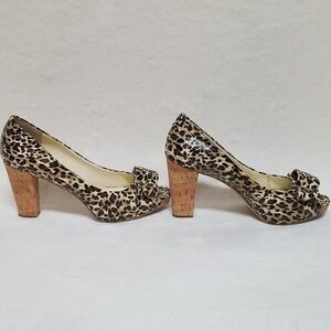 Vice cheetah print block heel platform pumps by Franco Sarto.