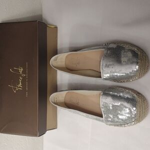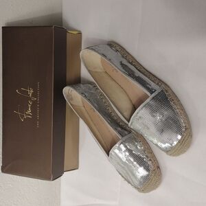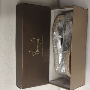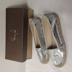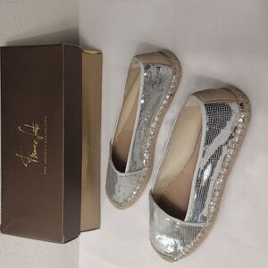 Franco Sarto women's embellished loafer flats artist collection size 7 medium silver and tan.