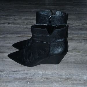 FRANCO SARTO |Amsterdam Black Leather pointed toe wedge ankle bootie Sz 7.5 EUC
