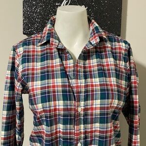 FRANK & EILEEN BARRY WOVEN BUTTON UP RED BLUE PLAID Shirt Top XS