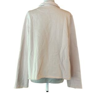 Triple fleece cotton jacket with front pockets, horn buttons, and waist hem detail .