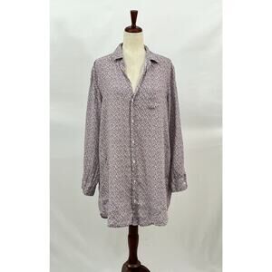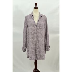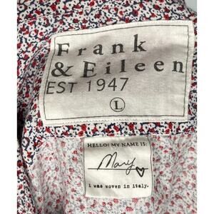 FRANK & EILEEN Sz L Large Blue Red Floral Mary Shirt Dress Linen Long Sleeve
