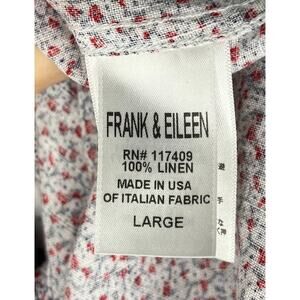 Women's dress by FRANK & EILEEN. Size L Large. Mary style, 100% linen, blue and red floral print. Long sleeve, button front. Good condition, no stains, holes or pilling