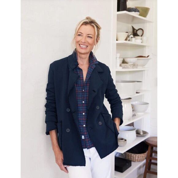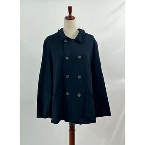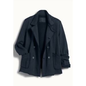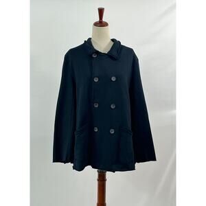 Women's English peacoat by FRANK & EILEEN. Size L Large. Belfast is the style. Navy color, double breasted, 100% cotton, triple fleece material, similar to a sweatshirt etc.