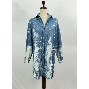Women's denim shirtdress by FRANK & EILEEN. Size S Small.. 100% cotton. Denim, Splatter print, intentional bleaching and distressing. Good condition, no stains, holes or pilling.