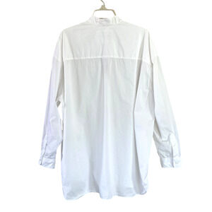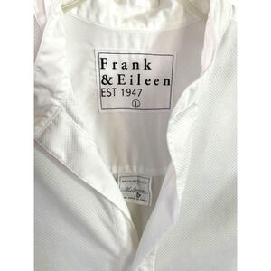FRANK & EILEEN "Victoria" Women's Size 4XL? White Button-Up Relaxed-Fit OVERSIZED Italian Tunic Shirt. Woven Jacquard Bib Detailing. Long Sleeves With Button Cuffs. Curved Hemline. 100% Cotton. Machine Wash. Woven in Italy.