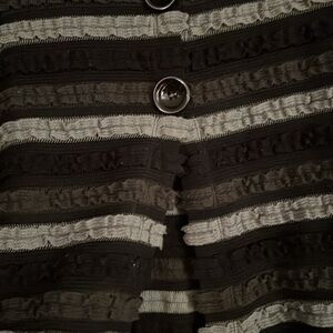 Lovely crinkled ruffled type pullover sweater. Short sleeves, cowl neck, two large buttons on front. Frank Lyman brand, size 10. This is highly unusual item and matches so many things. This has been worn 1-2 times, washed carefully and line dried. Only minimal signs of wear, very slight pilling.