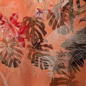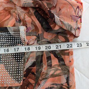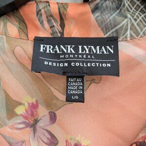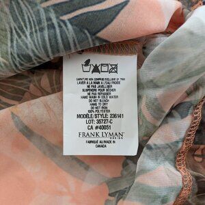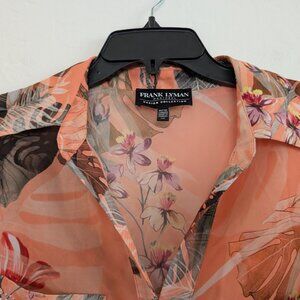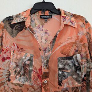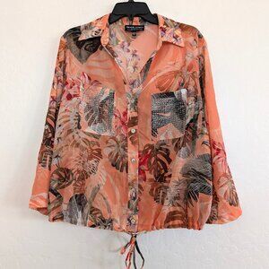 FRANK LYMAN Blouse L Multicolor Floral Sheer Embellished Roll Tab Sleeve Tie