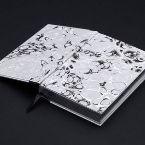 The Doctor Edition of Frankenstein incorporates the spirit of Dr. Victor Frankenstein and his (mis) deeds. It is quarter-bound in the finest goatskin black leather and aluminum. The use of aluminum was inspired by an operating table and therefore a real surgeon's needle was blocked onto the front cover. The spine is blocked in silver, while the detailing on aluminum is engraved with laser. There are eight illustrations inside (two spreads) that are sensitive to heat, so they transform upon touch, which means each illustration has two phases (pics 15 & 16). It comes in a protective solander box that was inspired by a doctor's tool bag from that era.