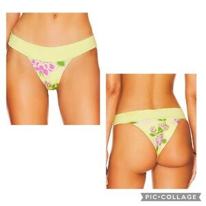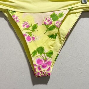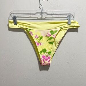FRANKIES BIKINIS Women’s Yellow Pink Floral NICK Swim Bottom In MOJITO Size L. Excellent pre-owned condition. Minimal signs of wear. No stains, holes or snags. All measurements are approximate.