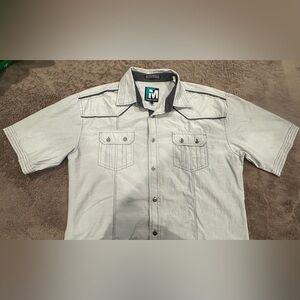 Upgrade your wardrobe with this stylish short sleeve button down shirt. Its sleek gray color adds a touch of elegance to any casual outfit.