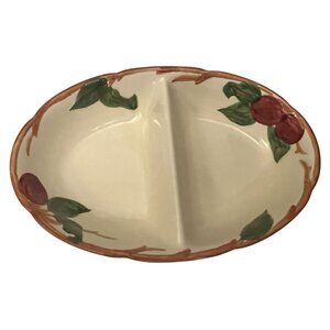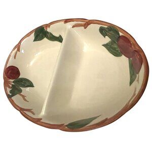 This vintage FRANSCISCAN Apple divided serving platter is a charming addition to any kitchen or dining collection. Its unique design and timeless appeal make it perfect for both everyday use and special occasions.