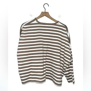 FRAPBOIS Long Sleeve Brown and White Striped Top One Size