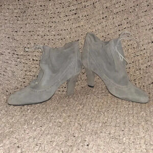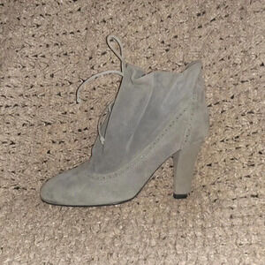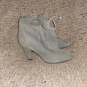 FRATELLI ROSSETTI-Gray Soft Suede Booties-Brogue Accent-Lace Drawstring-Sz 6-NM