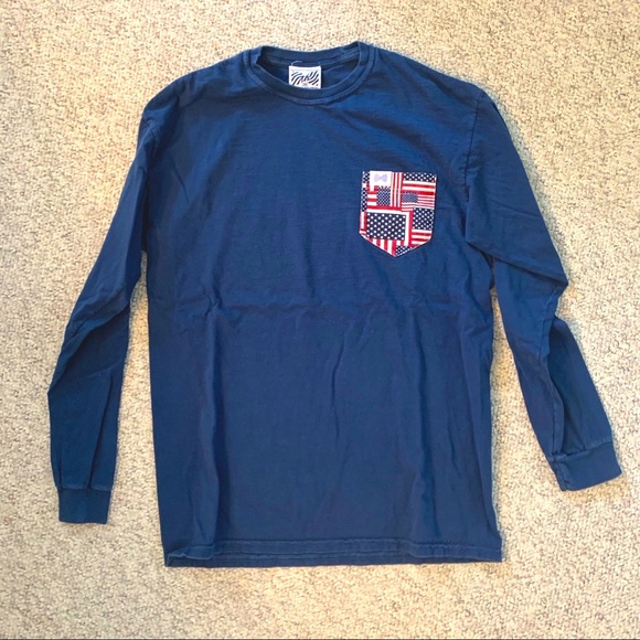 Long sleeve, navy, crew neck, cotton T-shirt by Fraternity Collection is in good used condition. From smoke free, pet free home.