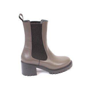 FRAU 2508 Gray Taupe Leather Elastic Chelsea Pull-On Ankle Boots