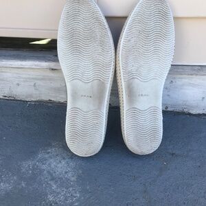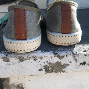 FRAU Tan Brown striped Canvas Loafers Shoes (44)11/11.5