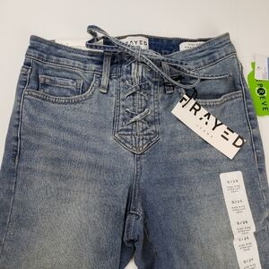 FRAYED brand jeans high rise straight crop lace front size 0 NEW