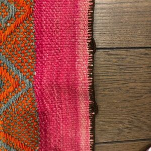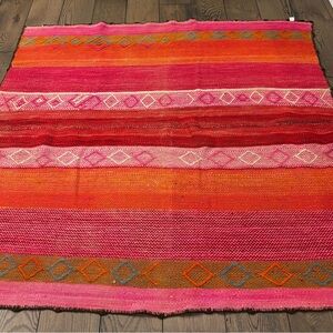 FRAZADA Peruvian Rug - this beautiful handmade rug full of HaPpY colors is made using natural dyes. Can be used as a rug, wall hanging or draped at the foot of a bed. Excellent condition. No stains. This rug weighs 8lbs & measures 62” x 67”