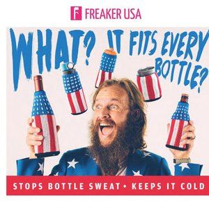 A Freaker is an amazing little bottle insulator that's a cool way to personalize your bottle . Freakers are fun, fashionable, and they will get you noticed whether you are drinking at your local bar or at a backyard barbecue. They're like sweaters. A Freaker is one-size-fits-all, so it will cover your standard beer bottle, your bomber, your fourties, and will even fit over your water bottle or a bottle of your finest wine. Guaranteed to stop bottle sweat and moist handshakes!