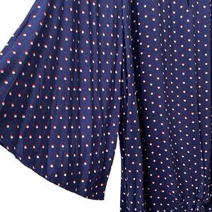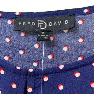 FRED DAVID Blouse Plus Size 1X Rayon Womens Top 3/4 Sleeve Navy Red Dot NWT