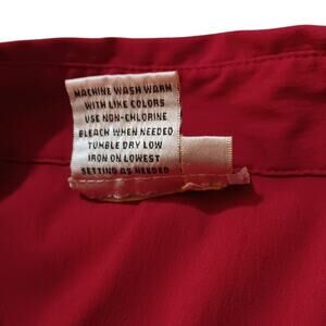 FRED DAVID Stretch Button Front Shirt Blouse Top S Darts Red 3/4 Sleeves Career