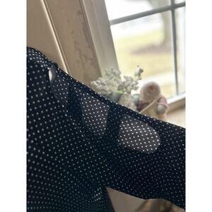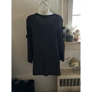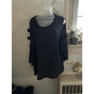 This Fred David Women's blouse in size 2X features a charming polka dot pattern with a round neckline and 3/4 sleeves that have cold shoulder cutouts.