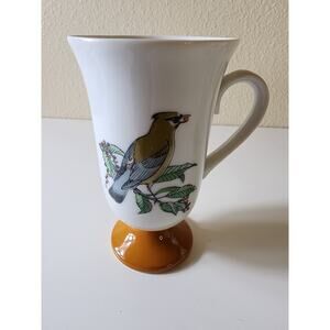 FRED ROBERTS VTG Made in Japan Footed Colorful Bird 8oz Coffee Mugs set of 4