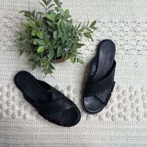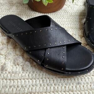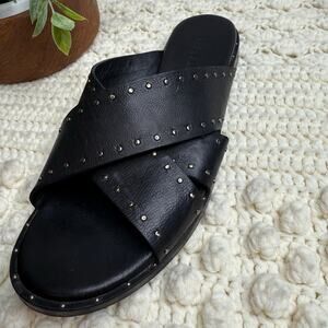 - FREDA SALVADOR ANTHROPOLOGIE Women's 8 Dew Studded Criss Cross Leather Slide Sandals Black -