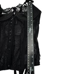 FREDERICKS OF HOLLYWOOD Small Black Lace Demi Cup Sheer Corset Top Garter Clips