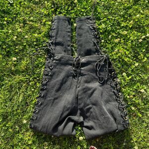 FREDERICKS OF HOLLYWOOD VINTAGE CORSET LACE UP BLACK DENIM PANTS STRETCH SIZE 5