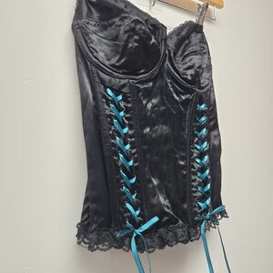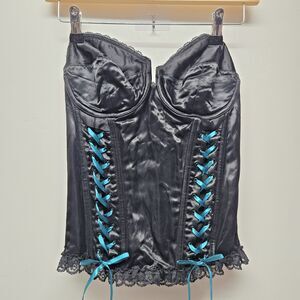 FREDERICK'S of Hollywood SEXY Corset sz 38 Black Teal Bows Whimsygoth.