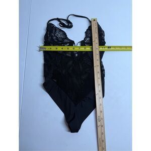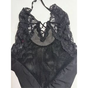 FREDERICK'S OF HOLLYWOOD Bodysuit Black Size M/lLace Sheer