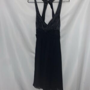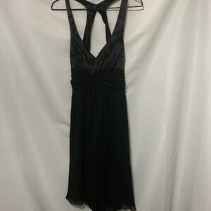 FREDRICKS OF HOLLYWOOD WO SIZE 12 BLACK FLOWY HALTER STULE DRESS SEMI BACKLESS