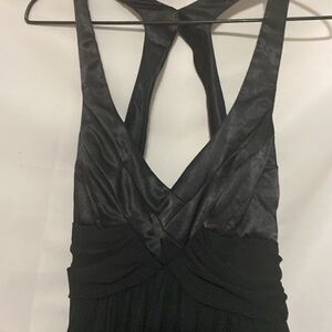 FREDRICKS OF HOLLYWOOD WO SIZE 12 BLACK FLOWY HALTER STULE DRESS SEMI BACKLESS WITH BACK BOTTOM ZIPPER LINED ROMANTIC PARTY DRESS LENGTH MEASURES APPROX 42” FROM SHOULDER TO HEM CHEST MEASURES APPROX 18” FROM SIDE TO SIDE