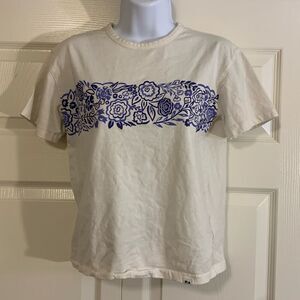 FREE ASSEMBLY, T shirt, crop belly, large with floral print, good condition