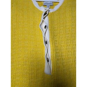 Elevate your spring and summer wardrobe with this stunning yellow knit mini dress from FREE ASSEMBLY. The dress features a crew neck and short sleeves with a button closure for added comfort. The scalloped trim adds a touch of elegance to the dress, making it perfect for casual occasions. This dress is perfect for both spring and summer seasons. This dress is a must-have for any fashion-savvy woman.