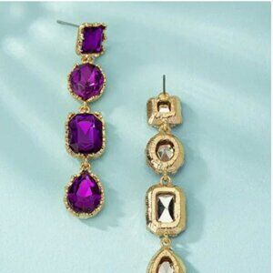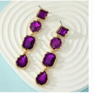 ⭐️❤️FREE Baguette Tiered Rhinestone Stone Geo Drop Chic Glam Classy Hip Earrings