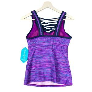 FREE COUNTRY Swim Tank SZ 4/6 Molded Cups UPF Berry Pink Purple Racerback NEW
